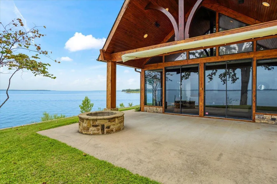THE MOST AMAZING VIEWS OF BEAUTIFUL LAKE TEXOMA FROM EVERY ROOM OF THIS HOME! THIS TYPE OF LAKEFRONT, BEACHFRONT PROPERTY ON LAKE TEXOMA IS VERY RARE! The home itself is a unique style with custom woodwork galore! Every bedroom has a lake view! The large great room has vaulted ceilings and a wood burning fireplace. Watch the sunrise while having breakfast in the oversized dining area. The view is PRICELESS! Just steps away from beaches. The neighborhood is gated with a private entrance. All furniture will convey with home. Enjoy gazing at the lake from the outdoor patio areas. The relaxing atmosphere of this property is unsurpassed! The garage is oversized with a workshop, large utility area and accessory garage.