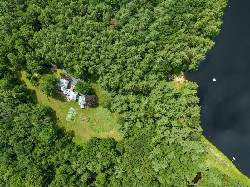 Your own private paradise! This stunning 14-room home sits on a 5+ acre lot surrounded by waterfront, waterfalls, total privacy, and breathtaking views from every angle. The eat-in kitchen boasts granite counters and stainless appliances, while the sunroom invites you to relish all four seasons in comfort. This extraordinary property offers more than just luxurious living space it is also perfect for entertaining inside and out. It includes an art studio, library, study, and sauna for your creative and relaxation needs. The main bedroom features a roof deck overlooking the lawn and waterfall. The 2-car garage has storage above. A greenhouse is ideal for gardening enthusiasts. The real highlight is the 300+ feet of waterfront on Lake Watatic, complete with a private dock and boat house. Close to the mountains adds to the perfect blend of tranquility and access to nature. The unique layout of the home harmoniously blends with its surroundings, making it a home you'll never want to leave.