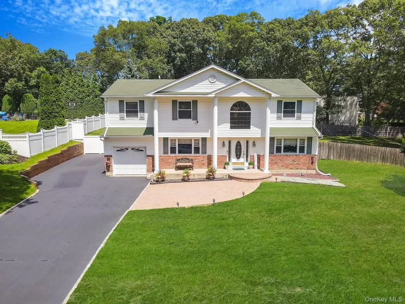 Majestic, Expanded Center Hall Colonial, 4 BR, 2.5 Baths on Usable 1/2 Acre Plus Property in North Smithtown; All Updated Windows Including Floor to Ceiling Andersens with Panoramic Views, Updated Siding (5 yrs), Roofing, Heating, Cesspool (10 Yrs); Newer Central AC (4 Yrs), Newer In Ground 16x32 Pool, Updated Appliances; Huge Primary Suite with 2 Walk-In Closets, Jacuzzi Tub and Separate Shower. Tax with Basic Star $18,567.36.