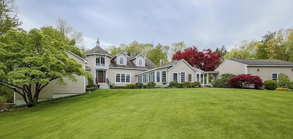 Rare opportunity to own a unique property in Westford Town Center with historic value on a 5.35 acre hilltop. Rambling Shingled Style built around the original 1850 Town wooden water tank including restored log Lodge with modern additions in 2004 & 2014. Very private, quiet setting with manicured grounds, mature plantings, brick walkways, gunite pool, patio, porches, storage shed & spacious 2 bay garage. Main living space is all on one level: completely updated large kitchen w/SS appliances, granite counters, breakfast & sitting areas with FP; dining room w/ Fr doors to living room; Lodge is FR & sun porch, bedroom & full bath, laundry, spacious Master with new marble bath w/double sinks, large walk-in shower & circular Foyer with circular staircase leading to 2nd floor office. Large Game/Rec room is on the 2nd level. Bedroom level has 2 large bedrooms & a full Bath. Updated utilities include 8 heating zones of HWBB & Electric Baseboard, 4 zones CA; 200 AMP, Town Water, 4 bed Title V