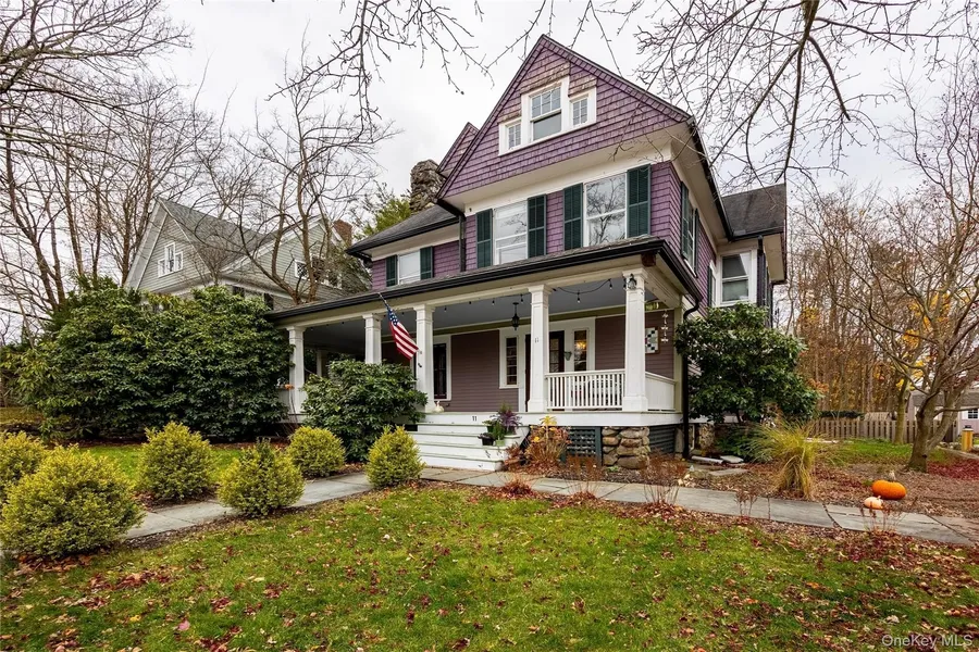 Step into the charm of 1920s architecture with this beautifully preserved 4-bedroom, 1.5-bath Queen Anne Victorian just moments from Warwick's vibrant village center. With its iconic front-facing lemonade porch, original millwork, and wide-plank hardwood floors throughout, this home offers an irresistible blend of historic character and everyday functionality. Inside, you're welcomed by an impressive foyer featuring rich wood paneling, a grand staircase, and detailed craftsmanship rarely seen today. Sunlight streams through abundant windows on every level, filling each room with warm natural light. The spacious living and dining rooms showcase stained wood trim, built-ins, a decorative fireplace, and period details preserved with great care. The large kitchen offers the best of both worlds, modern workspace paired with character, featuring a butler's pantry area for extra storage, display shelving, and coffee bar potential. Adjacent spaces flow seamlessly for entertaining and daily living. Upstairs, four comfortable bedrooms are filled with natural light and original doors, hardware, and woodwork. The third-floor walk-up attic is partially finished, offering tremendous potential for a studio, playroom, office, or additional living space, and is currently perfect for extra storage. The basement is partially finished as well and is currently being used as a playroom. Outside, enjoy a spacious backyard complete with an above-ground pool, mature trees for privacy, and plenty of room for gardening or outdoor gatherings. The property also includes an electric vehicle charger port, a rare convenience in a historic home. Located just minutes from shopping, grocery stores, restaurants, parks, and the train station, this home provides the perfect balance of peaceful residential living and everyday convenience. With its iconic curb appeal, preserved architectural details, and generous interior spaces, 11 Oakland Court is a true Warwick treasure with room to grow. Your opportunity to own a piece of Warwick's history-filled with charm, character, and potential-awaits.