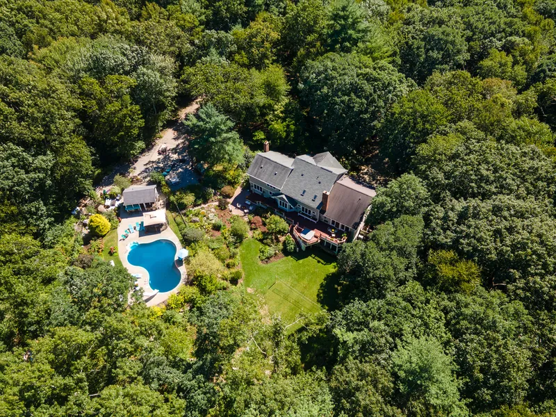 Newly priced! Welcome to your private wooded wonderland! Sited on 3 acres by Arcadia Park, the custom-built and artfully designed estate is ideal for indoor/outdoor entertaining, and has been lovingly maintained by the artist owners. The masterfully cultivated acre of surrounding landscape includes a variety of plantings that welcome hummingbirds and butterflies, while Arcadia Park provides the perfect venue for any active outdoor lifestyle...fishing, boating, hiking, mountain biking, and horseback riding. The residence boasts 7 bedrooms/4.5 baths with flexible spaces, hardwoods, and open flow, with the in-law suite having doubled as a professional office suite. A mahogany front porch leads into the vaulted living room with abundant natural light. The chefs kitchen features professional grade appliances and a tranquil view of the gardens, and is centered between two separate dining areas, formal and casual. A fireplaced, spacious great room has 2 sets of glass doors opening onto the rear 76' deck overlooking the dreamy grounds. The vaulted primary suite features custom built-in cabinetry and a bath with a jet tub/separate shower. Three more bedrooms and a full bath complete the second level. Outdoors enjoy the heated salt-water pool, pool house/full bath, wet bar and outdoor kitchen, hot tub, volleyball space, half basketball court, and a treehouse that sleeps four overlooking the picturesque setting. Enjoy social membership at nearby 5-Star The Preserve Sporting Club.