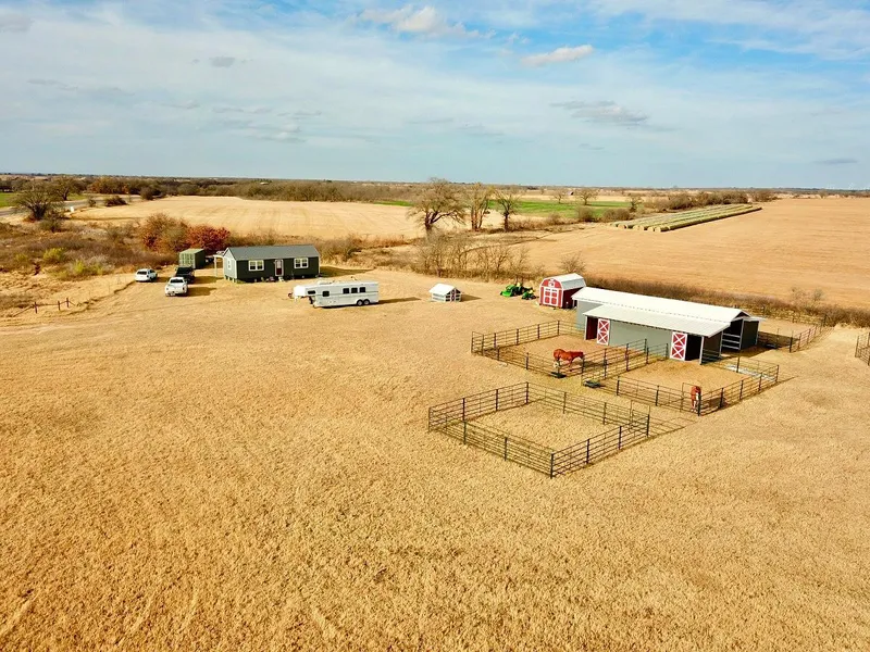 Everything on the property is brand new including the 38'x48' breezeway horse barn with 4 stalls and large runs (4 currently, but can be 6), a new round pen, new holding pen, the new and fully wired 16'x 40' Cowboy cabin that you can finish according to your own style; and it includes a full width 40' awning off the back.