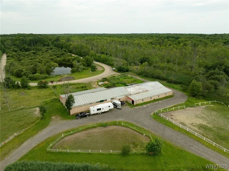Here's your chance to own 11.3 beautiful acres in Evans NY. This property includes a pond, a huge 10,000 sq ft barn with 40 stalls. There's a 1/2-mile training track and plenty of room to grow. Whether you're starting a boarding business, training horses, or breeding, this place is ready to work for you. Tons of potential, peaceful setting, and income possibilities - all in one amazing property.