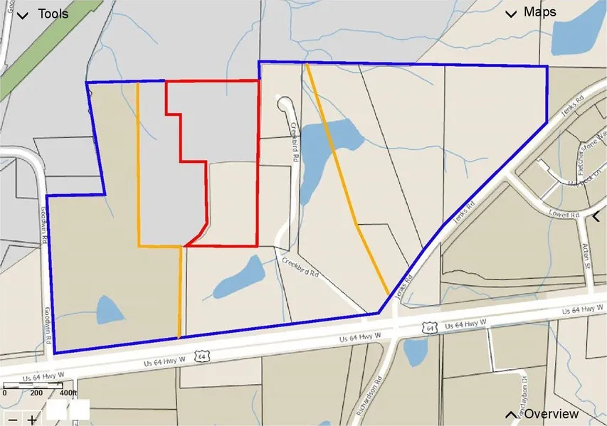 Attention Developers! This highly desirable 11.41 acres is part of a 48.85 Land Assemblage (possible 108.59 acres) located at the corner of Jenks Road and Hwy 64 West. Water and main sewer line extremely close, will require a pump station. Apex 2045 Land Use Map is Office Employment / Commercial Services. Future Interchange planned to be built over Hwy 64. See MLS# 2359660 - 2359665. See Documents for Apex Planning Dept Info