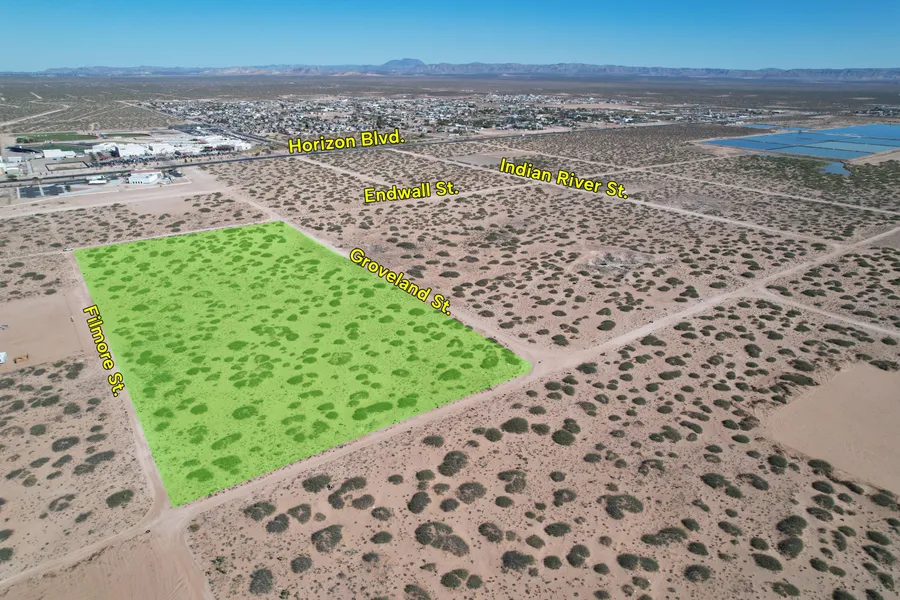 These are two undeveloped lots located just outside Horizon City in El Paso, TX. Only two blocks away from Horizon Blvd. A road can be improved to drive into the property to have a great 11.5 acres of land. This could potentially be a great site for a warehouse or a contractor's yard.