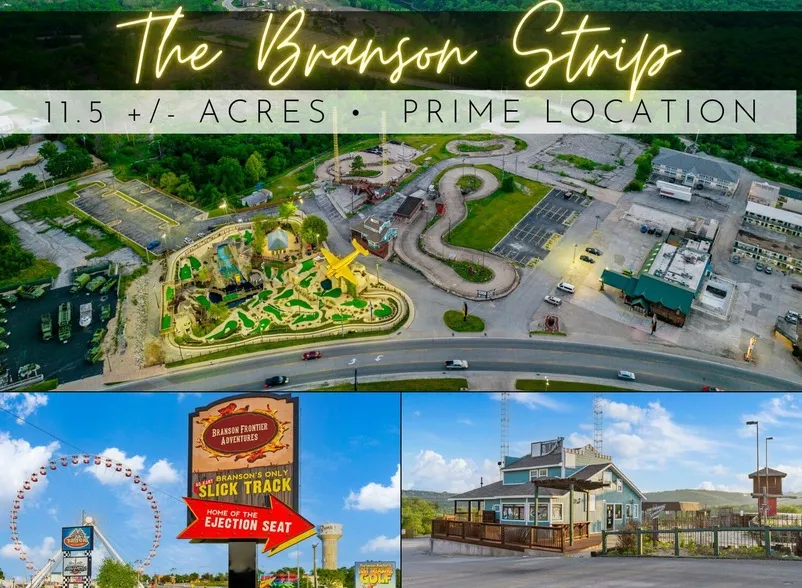 Looking for a commercial opportunity in Branson Missouri? This is it! 'Located right in the heart of the Famous Highway 76 Strip! 11.5 m/l acres of opportunity. Build your restaurant, multi-family units, air BnB chalets, retail mall, hotel, brewery, attractions.... the possibilities are endless. Zoned Community Commercial. Unparalleled ingress and egress with frontage on Highway 76 and the ''Yellow Route'', Green Mtn Dr . Over 30,000 cars per day pass by on 76 alone! Take advantage of the millions of visitors that travel here a year. Great visibility and signage. Right across the street from the Branson Ferris Wheel, The Track & Andy's Frozen Custard and adjacent to Starvin Marvins Restaurant, Lost Treasure Miniature Golf and Ripley's Believe it or Not. This is one of the last large parcels left on The Strip. All utilities are present.