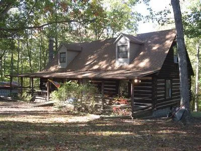 Main level bedroom and laundry. Recent improvements: new kitchen counters, new heat pump, new dishwasher, new carpet in great room (2006). Sun room across the back. Wrap around porch. Rustic interior log cabin look with vaulted ceilings and open loft bed/office with half bath. Stone-like fireplace in great room. Very private. Wooded with storage building.
