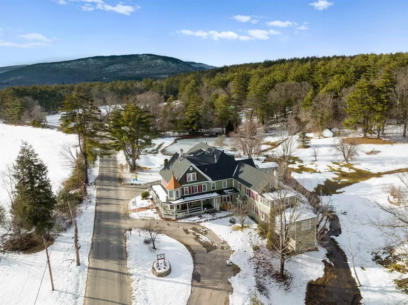 Welcome to the Rosewood Country Inn, nestled in Bradford, NH! This property is less than 10 minutes from Lake Sunapee and 15 minutes from Vail-owned Mount Sunapee. 30 minutes to Concord, under an hour to the Vermont border, and close to the Upper Valley and Dartmouth region. This property, which spans about 12 acres and includes a private pond with a gazebo and meticulously landscaped grounds, is the perfect opportunity to host weddings, continue running a bed and breakfast, or reposition it into a multifamily or rehabilitation center. The Inn has 11 beautifully appointed guest rooms, each with its own en suite bathroom. Nine rooms have fireplaces, and four have jacuzzis. This property has undergone significant upgrades in recent years, including a new industrial kitchen, walk-in freezer, refrigerator, a new roof, a 106-panel solar array, upgraded electrical from 200 to 600 amp service, and installed electric charging stations.