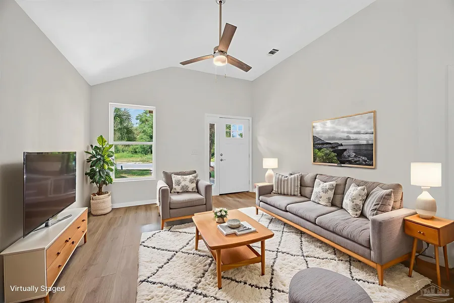 Welcome to a beautifully crafted new construction home where innovative building meets everyday comfort. This 3-bedroom, 2-bathroom home is built using cutting-edge metal framed insulated panels—offering exceptional energy efficiency, durability and low-maintenance living. Step inside and be greeted by a bright, open concept living space designed for both relaxation and entertaining. High ceilings and abundant natural light create a spacious, airy feel throughout. Luxury vinyl plank flooring flows seamlessly across the home, complementing the modern finishes and adding durability for everyday living. The heart of the home is the sleek kitchen, complete with granite countertops, soft-close cabinetry and high-quality stainless-steel appliances — perfect for everything from quick breakfasts to holiday dinners. Retreat to the generously sized master bedroom with large walk-in closet and en suite bath featuring a large, tastefully tiled walk-in shower, dual vanity with granite counters and modern fixtures. Two additional bedrooms with a conveniently located guest bath provide flexibility for family, guests, or a home office in this split floorplan property. Outside, Hardie siding offers added curb appeal and long-lasting resilience, while the advanced insulated panel construction ensures lower utility bills and year-round comfort. Located just minutes from downtown Pensacola, this home offers quick access to parks, entertainment, sporting events, shopping and dining — making it ideal for vibrant, connected living. And with its proximity to the interstate, you can conveniently access all that Pensacola, and the surrounding areas have to offer. Don’t miss your chance to own this forward-thinking, energy-efficient home built with quality, comfort and beauty in mind. Schedule your showing today!