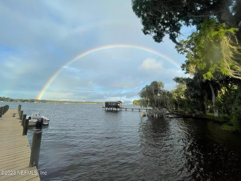 Peaceful Waterfront living on Drayton Island in Georgetown, FL! Like new 2018 Destiny home with high ceilings, split plan, spacious kitchen with center island & gas range, open concept into living area & crown molding throughout. Master suite has walk-in shower & large closets. Extra insulation for very low electric bills is a bonus! Exterior features dock with water which is directly across from the Marina where the current owners keep their boat, sandbag bulkhead, workshop & water system. There is no existing survey. Measurements are estimated.