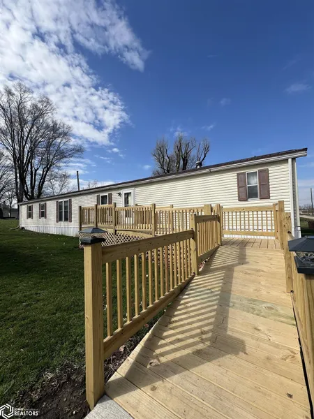This well-maintained mobile home sits on a spacious double lot and has so much to offer! Inside, you'll find 3 bedrooms and 2 full baths, including a primary suite with a private ensuite. The open layout features a large living room and an eat-in kitchen with a center island - perfect for gathering. Convenient main-level laundry adds to the comfort. Enjoy the outdoors with a fenced yard, rear deck, and plenty of parking thanks to a two-car metal garage, plus an oversized carport. A front entry ramp provides easy access for all. Call today to schedule your showing - this inviting home is move-in ready! Enjoy easy living in a small town!
