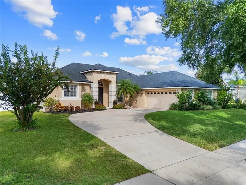 Located in the highly sought-after gated community of The Estates of Auburndale, this beautifully updated 5-bedroom, 3 bath pool home is nestled on a quiet cul-de-sac, offering both privacy and elegance. From the moment you arrive, you'll be greeted by stunning double French entry doors with decorative wrought iron and glass accents, setting the tone for the thoughtfully designed floor plan.