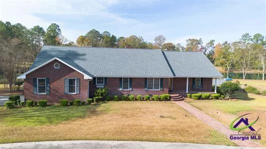 This all brick home includes 3 bedrooms, 2 baths, master suite, big eat in kitchen, a huge den with a fireplace with wood stove insert. It's an unbelievable view from the 40x10 back porch onto the backyard that includes a pond and a fenced garden area. The lot is 6.3 acres. There is also a 32x20 workshop with rollup door and a porch area on the front of the shop. The centerpiece of this property is the pond and backyard area. The stocked pond has a new walk way and dock. This is a great location, close to the college and the local award winning Bleckley School System.