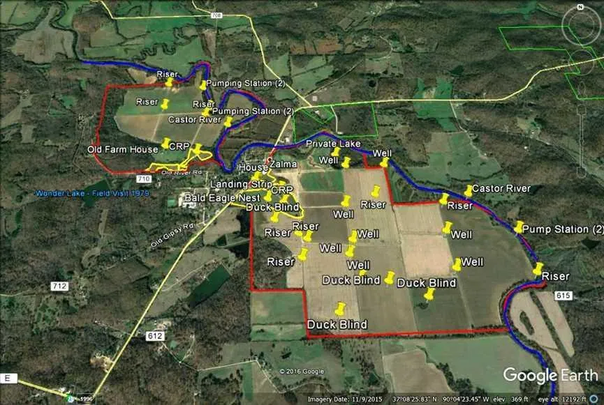 Aside from consistent farming income, this mixed use, recreational property features Castor River frontage and plays host to a vast array of native and migratory wildlife thanks to it's proximity to Mingo National Wildlife Refuge. There are currently 4 pit blinds installed with ample opportunity to expand the hunting for personal use or additional income. Whitetail deer hunting is also exceptional. Property also features a private lake and aircraft landing strip.