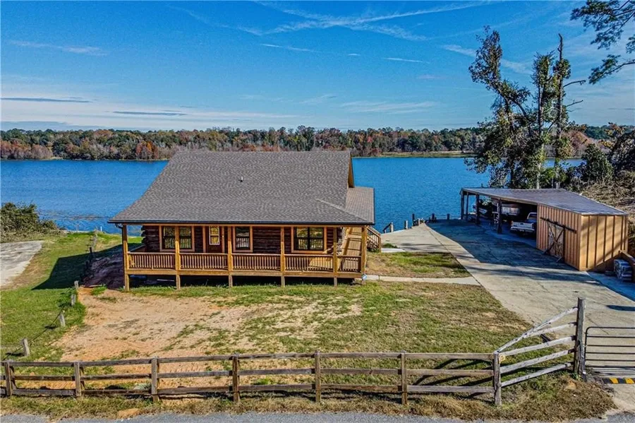 Nestled on the beautiful shores of Lake Eufaula a completely re-built and transformed home! You have to bring your buyers to see all of the amenities this home has to offer from the chefs dream kitchen with state of the art appliances, it is just a showcase of dreams! Sit back and relax on the wrap around porch overlooking a 45,000+ acre lake home to some of the best fishing in the U. S. The primary bedroom with a en suite bath that boast a free standing tub and separate shower. 2nd bedroom is large and cozy with a walk in closet. There is a 2nd full bathroom in the hallway for guests. The entire bottom floor (accessible from the outside) has been fully converted to a large room that you can make whatever you dream! Large man cave, guest quarters, kids play room etc. There is also a full bath downstairs. Outside you will find a floating dock with a jet ski area. There is a covered area where you can put your boat or vehicles. All of this at the end of the road sitting privately next to core of engineers property. Make this your dream house or a 2nd home that you can sit on the wrap around porch and enjoy the breeze. Whether you're seeking a peaceful lakeside retreat or a home designed for entertaining, this property offers an unparalleled lifestyle on Lake Eufaula. Lake Eufaula is a true hidden gem!