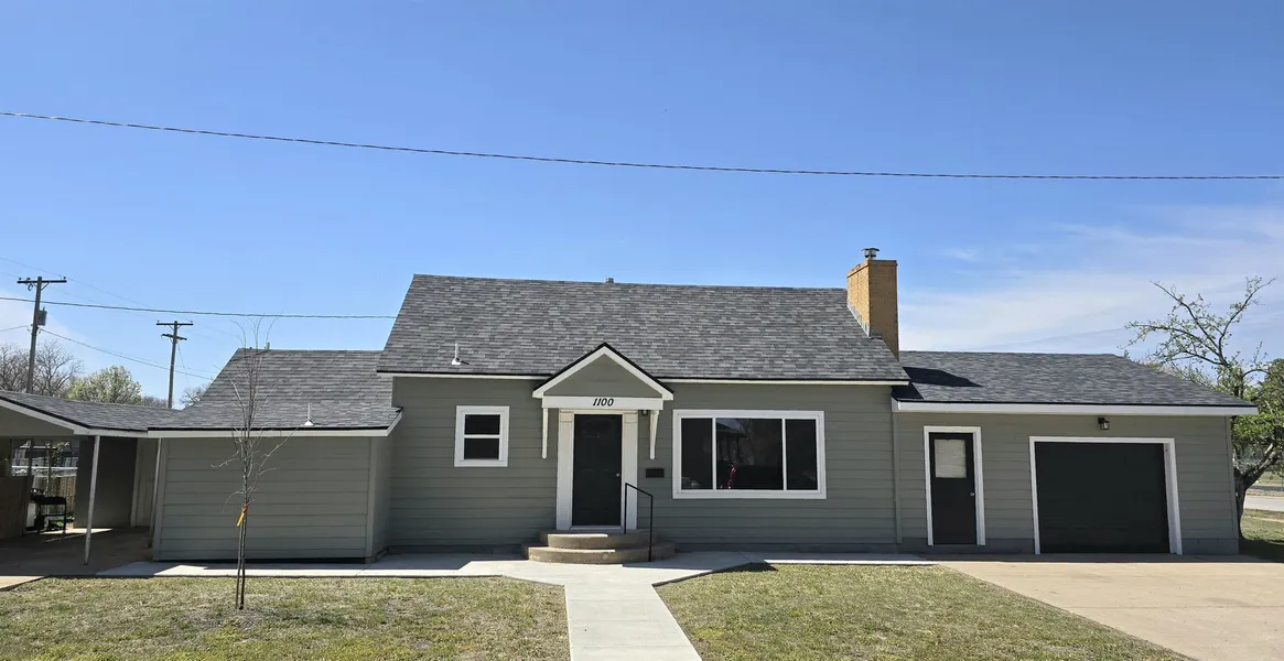 This beautifully renovated 2~bedroom, 1~bath single~family home offers style, comfort, and functionality all in one. Nestled on a corner lot, you`ll love the warmth of the cozy wood~burning stove, the sleek, modern updates throughout, and the oversized 1~car garage with an additional carport—plenty of room for storage and parking. The large bathroom provides a luxurious feel, and thoughtful updates make this home truly move~in ready. Updates include electrical, plumbing, siding, windows, cabinets, paint, flooring and garage door. Perfect for first~time buyers, down~sizers, or anyone looking for low~maintenance living without compromising on space or charm!! For more information on this property, or to take a look at the property, call/text Tim Cossaart with RE/MAX Pro at 785~639~6395...