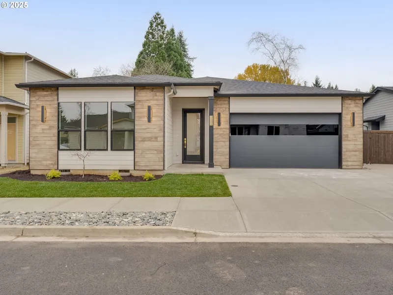 FOR MAPPING USE: 5414 NE 109th St, Vancouver, WA 98686 Modern, open & bright w/ gourmet kitchen, quartz island, and high ceilings. One level living with master suite and walk-in closet. Interior finishes include top tier quartz, extra large island, stained hickory cabinets cabinets, high quality LVP flooring throughout and tile baths and shower. Exterior provides an covered patio and landscaped yard with fence. Wide street with extra large RV parking behind gate.