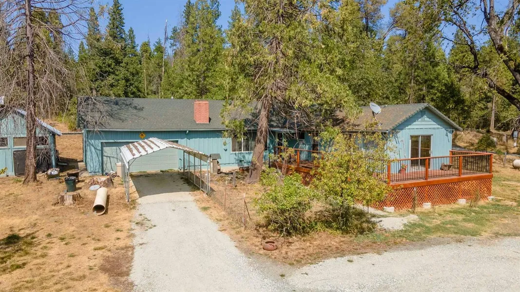 Lovely home with a wrap-around redwood deck surrounded by beauty..and just 45 miles to Yosemite! Bordered by BLM... Peaceful and quiet, but easy access! A seasonal creek too! This home features beautiful custom woodwork throughout... warm and inviting like a cabin in the woods. Many improvements in the past 8 months including the permitted wrap-around redwood deck, new water heater, new driveway gravel. In 2019, a new spacious laundry room addition!! with counter space, cabinets, and recessed lighting. The living room has a cozy wood burning fireplace insert and a big picture window to front yard. The master bedroom has a slider out to the new deck. Kitchen updated in 2006. PLUS 2-car garage and HUGE detached WORKSHOP! Come see this beautiful Greeley Hills property with loads of charm. Call it your home or your vacation home... with lots of outdoor activities including hiking, fishing, camping, and hunting. And the elementary school is just 4 miles away.