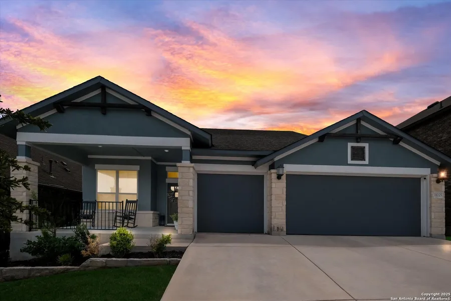 Welcome to 11025 Mill Park, a beautifully upgraded 3-bedroom, 2-bath home with a 3-car garage, nestled in the highly sought-after Davis Ranch community of Northwest San Antonio. With timeless curb appeal, thoughtful design, and elevated finishes, this home delivers comfort, style, and functionality. From the inviting covered front porch to the modern exterior with stone and stucco accents, this home immediately impresses. Step inside to discover a bright and airy layout featuring wood-look tile floors, high ceilings, and a spacious open-concept design that flows seamlessly from the kitchen to the living and dining areas. The chef's kitchen is the centerpiece, offering quartz countertops, a large island with bar seating, stainless steel appliances, gas cooktop, stylish gray cabinetry, and elegant brass hardware-perfect for entertaining or everyday living. The private primary suite includes a luxurious en suite bathroom with dual vanities, an oversized walk-in shower, and a spacious walk-in closet. Two secondary bedrooms offer flexibility for guests, kids, or a home office. Step outside to enjoy the covered back patio and serene backyard complete with mature trees, string lighting, and a privacy fence-ideal for relaxing or entertaining outdoors. Highlights include: 3-car garage with extended driveway Covered front & rear patios Designer lighting and curated fixtures Built-in doggy door for pet convenience Access to Davis Ranch amenities: pool, park, and walking trails Zoned to Northside ISD and close to shopping, dining, and Lackland AFB 11025 Mill Park, San Antonio, TX 78254 3 Beds | 2 Baths | 3-Car Garage | Approx. 2,300+ Sq Ft This turnkey home offers modern charm, thoughtful upgrades, and the perfect location-all in one of San Antonio's most desirable neighborhoods.
