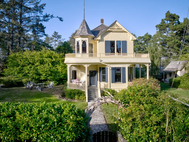 The “Jewel of Seaview” is an elegant example of “Picturesque”. A design movement that combines the pictorial value and importance of creative architecture and the charm of a rustic landscape. Built in 1888 it’s extensive use of old growth redwood and cedar on the interior and a variety of shingle styles on the exterior , along with a viewing turret, many doors leading to enjoying the ocean air, rustic views and garden, propelled it to become a National Historic Landmark. In 1988 it began a true restoration as the current owners reclaimed the falling treasure by recreating the foundation, the plumbing, electrical and heat, and exterior while still maintaining the historic structure and design. The home is sold with original antique furniture.