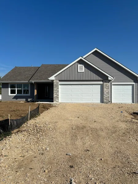 New Construction in Ogle County! 1803 sq. ft. Open concept great room ranch with cathedral ceiling. Large dine in kitchen with 2 walls of cabinets, island with breakfast bar, walk in pantry closet, stainless range, dishwasher and microwave. Primary bedroom with double closet, private bath, main floor laundry room, bench seating at garage entrance. Full basement, 3-car garage and deck and blacktop drive. AGENT OWNED