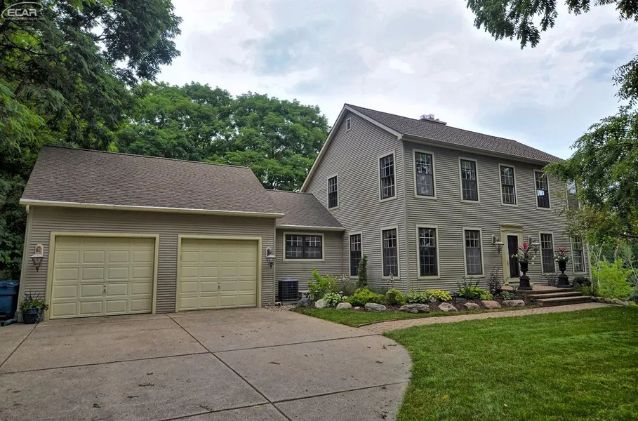 This fabulous 2,500+ sq.ft. colonial home sitting on 5 acres also has a 36'x56' pole barn with a 2nd level. Hardwood, slate and tile throughout, except for carpeting in the partially finished basement. Kitchen has granite countertops, along with slate flooring. Enter on the lighted winding 400' driveway back to your own private getaway. You'll be amazed when you enter the 2 story foyer and tour this well maintained home, which includes a 1st floor laundry. Make sure you click the link for the 3D virtual tour.