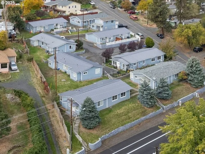 Welcome to "Emerson Cottages", a 17-unit turnkey gem in the heart of The Dalles, Oregon. This charming cluster of duplex cottages isn't just an investment, its a community. Sixteen of the units are two-bedroom, one-bath layouts with open kitchens and living areas, perfect for modern living with vintage charm. There is one studio unit that is currently used as an office (currently not rented), it can either generate additional rental income or offset costs for an on-site manager, flexibility that adds real value. The property is in good condition, with systematic upgrades completed as units are vacated, while additional upside exists for an investor ready to enhance the remaining units. Emerson Cottages meets the growing demand for quality housing in the area. Some units offer breathtaking views of the surrounding landscape, making Emerson Cottages a picturesque place to live. Step outside and enjoy the common area that includes a play structure. There is a separate on-site coin operated laundry room, and a true community atmosphere. With an average unit size of 730 square feet, this property blends charm, comfort, presenting a cash-flowing, turnkey investment with clear upside potential through renovation and rent optimization. Property is also located in an "opportunity zone!" It is listed in commercial RMLS as well #593621914.