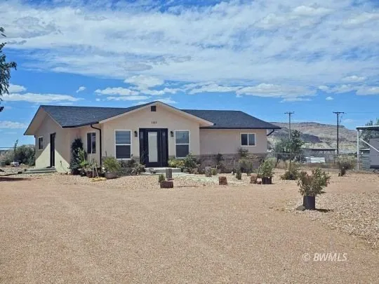 High quality Craftsmanship amazes in this 3 bedroom 2 bathroom home on a sizable .37acre lot with a garage. Built-in 1985, the home underwent a total makeover in 2021. Don't suffer from tumbleweeds and thorns with this effective xeriscaping and river stones outside, LVP and carpet inside. The floor plan is well designed, and makes the most of the space. The deep living room flows nicely into the dining room and kitchen with island, where a long hallway embarks to the bedrooms and bathrooms. Granite countertops and custom cabinets are found throughout. Lovely doors off the kitchen host a washroom with storage shelves, as well as a separate and nifty pantry. The work space and man cave the garage offers is every mechanic's dream, while a small garden and greenhouse can charm a farmer. Call for a tour today! Information is deemed reliable but is not guaranteed to be accurate