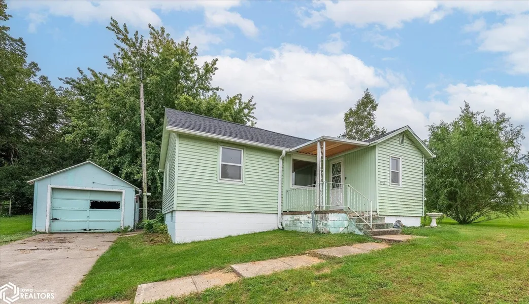 Renovate this 2-bedroom home with a detached 1-car garage on a large corner lot near churches and downtown Harlan. Features a spacious living room, eat-in kitchen, and 2 bedrooms. The basement offers a bath, laundry area, and storage. New shingles on home and garage! Great opportunity to transform this home. Motivated seller.