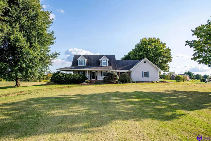 Sprawling home situated on an acre lot near the LaRue County Golf Course! Step into this home from the front country porch to a large living area featuring wood trim and a grand staircase. This kitchen longs to have all of your family gatherings in it with an abundance of cabinetry, recessed lighting, granite countertops, built in oven, and a countertop stove in the island! The master bedroom is located on the main floor with French doors leading to the back deck, large walk in closet and a spacious master bath room with double vanity sinks, large soaking tub and separate shower. Partially finished basement features more cabinets and plenty of storage as well as a wood stove for colder nights and a utility garage to store your lawn mower and other gardening tools. Call for your tour today!!