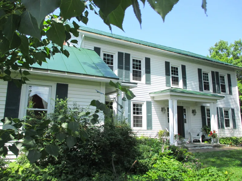 Located on a seasonal road (just beyond the house) this farmhouse sits on 5 scenic acres with 2 koi ponds, giant maple shade trees, vegetable garden next to the barn with room for the horse, goats or chickens. The historic center hall colonial retains its original floors, doors, windows and exposed beams. The center kitchen has been tastefully brought up to date with granite, stainless steel appliances and center island. The antique cast iron cook stove stays. Cozy in the winter!!