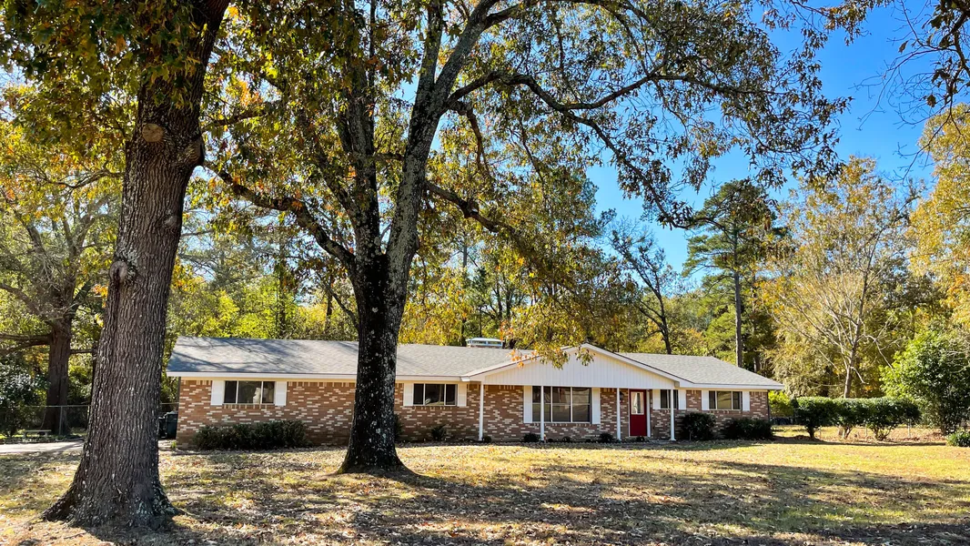 Step through the charming red door of this beautiful brick 3Bedroom/2 Bath 2017 sq ft with a 556 sq ft attached garage and enter the perfect homestead complete with wood tile floors, stainless appliances, and plenty of room to stretch out and entertain the family! Cozy up to the brick fireplace and enjoy the custom built-ins for office space. The flow of the house is welcoming and provides a blank canvas ready for your own custom touches. French doors lead to a large covered back patio and into a sprawling fenced yard with huge mature oaks great for picnicking in privacy. A 1200 sq ft storage building is perfect for keeping those belongings safe secure and out of the elements. The property sits on just over 1 acre in the coveted countryside of East Texas.