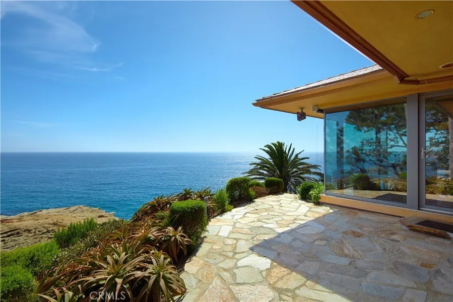 Rarely does a property of this magnitude present itself on the market. A custom ocean-view estate where artistry and nature unite on a blufftop promontory towering over the ocean. A welcoming home that is part luxury, part beauty, and 100% Laguna Beach. Enjoy views that encompass Dana Point, Catalina Island, colorful sunsets, breaking waves, and twinkling evening lights are viewed from most indoor and outdoor living areas at the estate. Located at the end of a private cul-de-sac in South Laguna’s gated Three Arch Bay, the 2.15-acre property encompasses the bluff and part of the beach below. Custom hand-carved mahogany garage doors and a matching entry gate enrich curb appeal, and a private courtyard with Inca Gold natural stone welcomes all with a pool with water feature, electric cover and massaging jets; a built-in Twin Eagles BBQ bar and Salamangrill and retractable Sunbrella awning; two fire pits and outdoor shower; a full outdoor bath; Bromic heater; and bespoke art from Laguna’s renowned Marlo Bartels. Floor-to-ceiling windows, glass doors, and sliders from Germany’s NanaWalls unite exterior spaces with a fabulous interior, where immediate ocean views are experienced upon entry. Main living areas comprise a custom walk-in wet bar with ice-effect glasswork, handmade African movingui cabinetry, a see-through fireplace, a grand dining room that opens to the pool, and a family room with access to an outdoor view deck. The kitchen is as beautiful as it is functional thanks to an island with Brazilian granite top, custom aluminum-finished cabinetry crafted by Bulthaup in Germany, two built-in Miele refrigerators, and a suite of Gaggenau appliances. Blue Bahia and Blue Pearl Granite shine in the primary suite, and select secondary baths reveal Keuco vanities and mirrors. The lower-level theater is accessed by a Garaventa lift and features state-of-the-art A/V equipment. A garage with lift accommodates four cars, a driveway that can fit up three cars, and a Kohler gas backup generator, Lutron lighting, Elan audio, an aluminum roof by Future Roof Systems of Canada, fast water-heating systems, and a 500-gallon whole-home reverse-osmosis system are included.