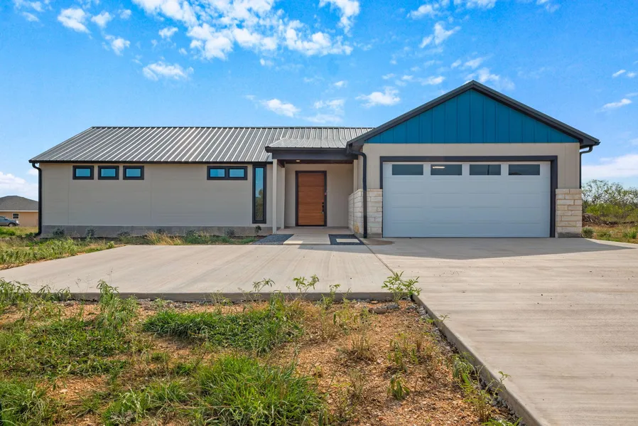 Modern Comfort Meets Country Living! Nestled on 1.958 acres in Blue Sky Estates, this 2024-built home blends sleek design with cutting-edge durability. A 3-bed, 2.5-bath with 2,193 sq. ft. in the main house + a 400 sq. ft. 1-bed, 1-bath guest house. This stunner is built to last! Enjoy soaring windows, an open-concept layout, and a spa-like primary suite with private deck access. The chefs kitchen features stainless steel appliances, a large island, and stylish fixtures. Built for efficiency & strength, the home boasts a metal roof with R39 insulation, high-performance composite walls (R20), and a patented structural system for wind resistance and fire protection. New septic, well, & 2-car garage included! All thisjust 16 miles to Lockhart, 20 to Bastrop, and 39 to Austin. Modern. Durable. Unmatched. Come see it today!