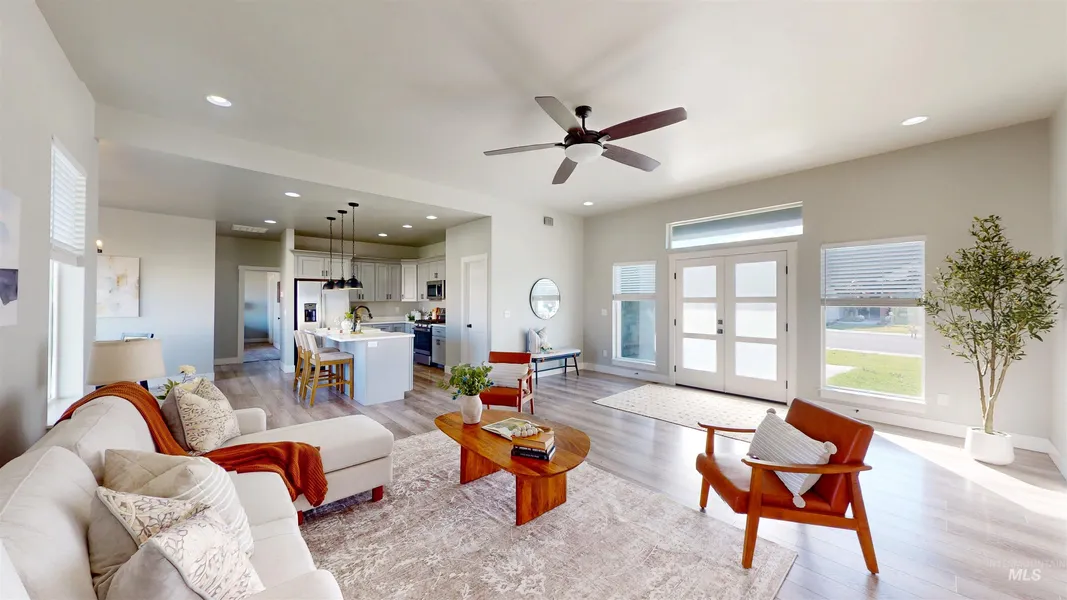 Move-in ready and better than new! This beautifully finished 3-bedroom, 2-bathroom home is designed for modern living with a spacious open-concept layout and a split-bedroom floor plan offering both privacy and comfort. The kitchen features sleek quartz countertops, soft neutral tones, and ample cabinetry—ideal for everyday meals or entertaining. The inviting living area flows seamlessly into the dining space, creating a bright and open atmosphere throughout. The generous primary suite provides a peaceful retreat with double sinks, a walk-in closet, and a private bathroom. Thoughtful finishes are found throughout the home, including full landscaping, a fully fenced yard with sprinklers, and installed blinds—ensuring effortless move-in readiness. Additional highlight: Refrigerator, gas range, microwave, washer, and dryer are all included. Located near schools, parks, and everyday amenities, this property blends convenience with quality craftsmanship. Whether you're starting out, downsizing, or searching for your forever home, this one truly checks all the boxes. Don't miss your opportunity to make it yours!