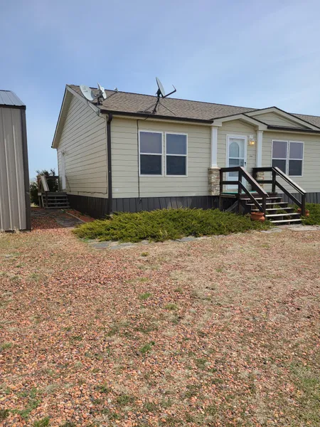 Country living close to Keyhole on 40 Acres, surrounded on 3 side by ranch land. 2010 Shult 30x76 Manufactured Home with 32x40 Detached Shop/Garage on fenced 40 acres with pond. Living room/Dining room, Kitchen with island sink/snack bar and all appliances, Family room with doors to deck and built-in entertainment center. Master Bedroom, large master bathroom with separate his/her vanities, separate shower, Garden Tub with Jets, and Walk-in Closet. Office with built in desk and cabinets, closet, double closing doors. Laundry room with outdoor entrance, washer/dryer, deep utility/laundry sink and cupboards. Electric with baseboard heat, central air and inline water heater. Detached garage has concrete floor, two entrances, 8x16ft garage door with opener, 10 ft sidewalls, seperate storage space and work benches. Private well and septic system. Keyhole Reservoir is 4 miles away, Moorcroft is 19 miles and Sundance is 20.