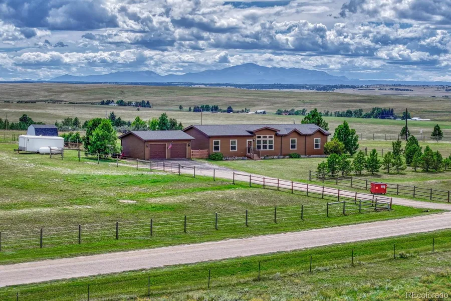 Welcome to your opportunity to claim your stake in picturesque Kiowa, CO! This delightful 3-bedroom, 2-bathroom home is nestled on an impressive 11.54 lot. The stunning views of Pikes Peak and the front range will take your breath away while you are sipping your morning coffee or relaxing after the day watching the sun set or if you have a passion for the equine life you can ride into the sunset! Step inside to discover a warm and inviting interior featuring a wood burning stove to warm up in the upcoming Colorado fall evenings. The kitchen is a highlight, complete with an island, plenty of counter space and storage for your kitchen gadgets, pantry, and a full suite of newer stainless steel appliances including a refrigerator, stove, microwave, dishwasher, and disposal. For more formal occasions, enjoy the separate dining room with plenty of natural light not to mention the natural light can be enjoyed throughout the whole house. The furnace, water heater, roof and all south side windows are all brand new saving that worry of the "behind scenes" necessities. Lets not forget to mention the barn has brand new siding and the shed has a brand new roof as well. Roof, furnace and water heater have all transferable warranties. If you have been looking for that rural retreat in Elbert County this is it, only a few minutes to the heart of Kiowa with a few delicious eatery options, gas stations, a luxurious day spa and more!