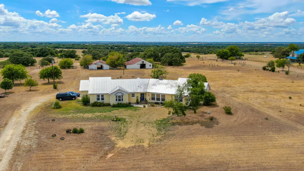 1939 Farm home in Salado ISD. Four bedrooms, two baths, two living and two dining. Wood floors throughout home. Space for a 2nd living area, office, or game room. Large open kitchen with area for breakfast table. Kitchen windows overlook the back yard which encompasses a large deck and two barns. Home sits on top of a small hill with amazing views off the front porch.