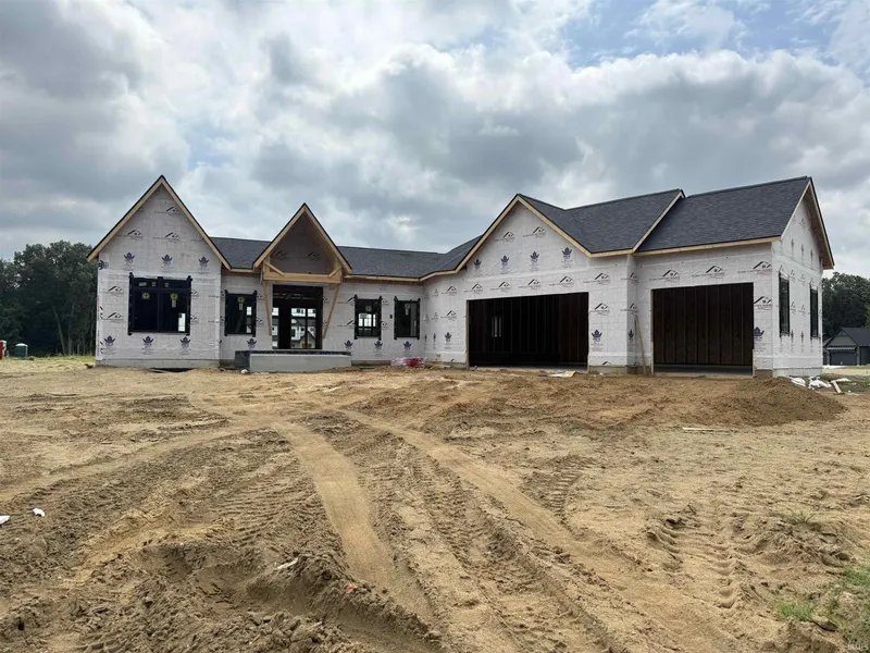 Reserve and customize this sprawling high quality ranch underway by Kline Custom Homes for early Spring 2026 completion. Framing complete. Room and privacy for all in this 3 bedroom, 3 1/2 bathroom open floor plan ranch with maximum curb appeal. Features a WALKOUT basement and a covered composite deck overlooking a fully irrigated and seeded lawn. Fully insulated and drywalled 3 car garage. Amazing Great Room with coffered beam ceiling and custom 6' linear electric fireplace is the heart of this home. Custom cabinetry, large walk in pantry, and a beautiful quartz island in your dream kitchen. Opulent Primary Suite with huge shower and relaxing freestanding soaking tub. Coffered ceiling also highlights primary bedroom along with an amazing walk in closet. Each of the two bedrooms in the guest wing have their own en suite bathroom. List price is with unfinished basement; custom pricing is available for finished basement to make this a 4 or 5 bedroom home by Kline Custom Homes to your specifications. New roads may not GPS: Use 54195 Beech Road, Osceola, IN and turn west on Wharton Way.