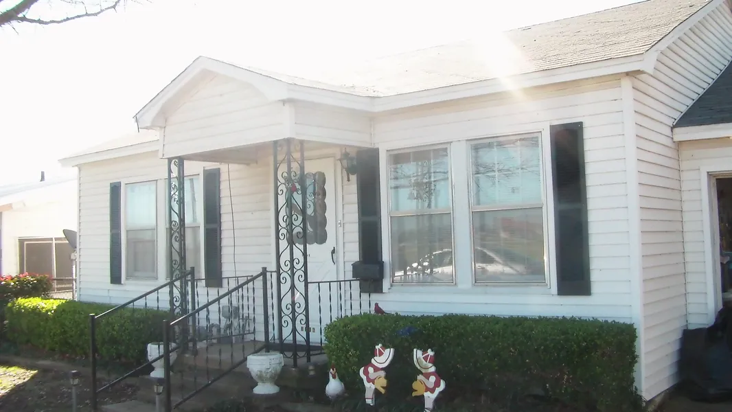 Landscaping: Mature elm as well as oak trees in the front and back yard. Small shrubbery around the house.
