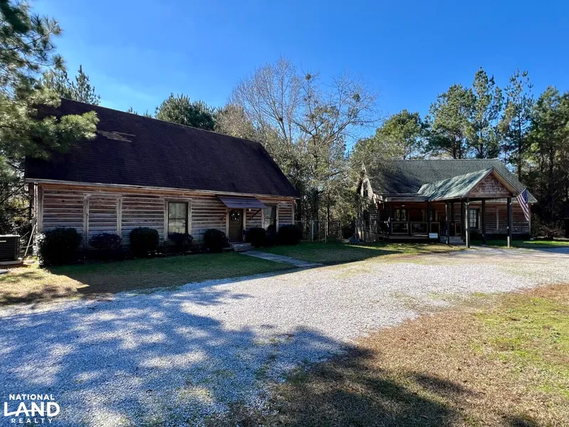 This multi-use residential and commercial compound with acreage is located on Roberts Road & Log Creek in the Chunchula area of Mobile County. The property boasts 38+/- beautiful acres entirely high fenced, two residential custom homes, a 3,000+/- sf warehouse/office/apartment, two dog kennels and four storage barns. Both homes have wood log exterior siding as well as vaulted kitchen/living rooms, with spiral staircases leading to upstairs lofts. The metal building has served as the family business office for many years. Half of the warehouse has been built out into a 1,500+/- sf office/apartment. There is an internal trail system connecting three established food plots & four ponds. Deer, Turkey, Waterfowl & small game are abundant. Enjoy fishing the deepwater ponds & swimming from the sandy banks of Log Creek, which runs the entire south boundary. Don’t miss your chance at this incredible opportunity. Shown by appointment only!