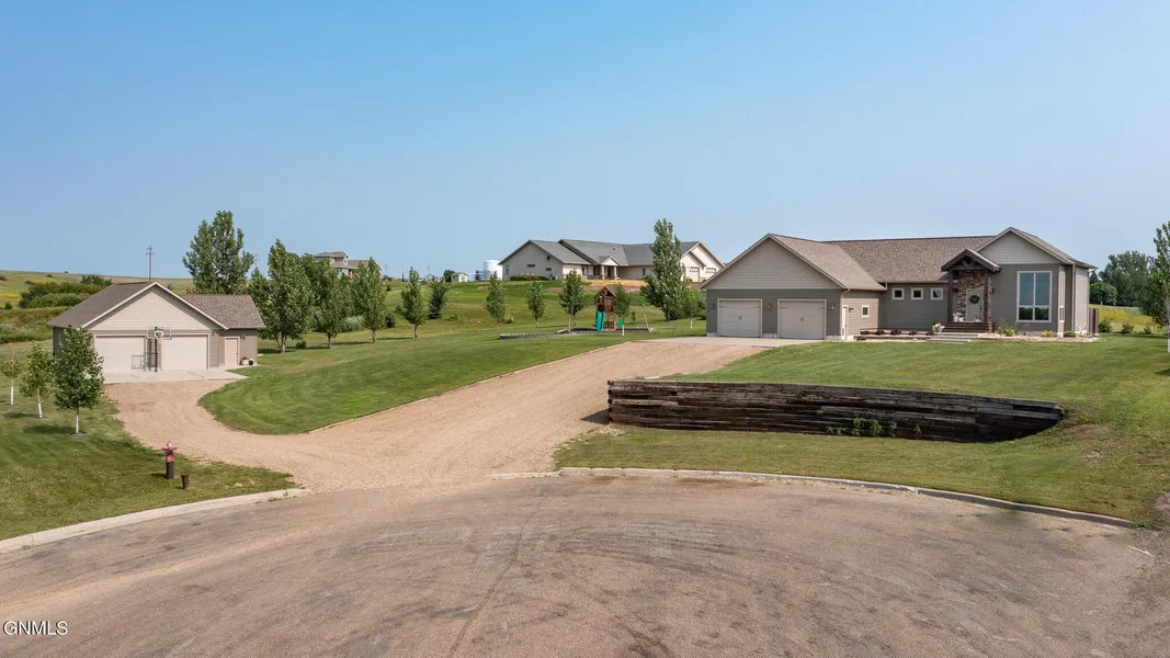 Welcome to this modern custom-built home situated on a sprawling 1 Acre lot, where quality craftsmanship and modern elegance meet. Nearly 3,900 square feet of finished living space plus a 1,424 SqFt SHOP make this home an absolute gem. As you approach, a grand entrance draws you inside, setting the stage for the remarkable interior within. The living room serves as a stunning focal point with its soaring 17' cathedral ceilings adorned with wood beams, stacked stone fireplace, and an abundance of windows that flood the space with natural light. This room effortlessly flows to the private back patio or into the dining room, both ready for entertaining a crowd. The kitchen is the heart of the home, boasting beautiful Carrara marble backsplash, luxurious quartz counters, and a sizable center island w/ prep sink. Statement chandeliers & an all-white main floor interior adds an air of modern sophistication, effortlessly complementing any design style. With 4 bedrooms and 3.5 baths, including a magnificent primary ensuite, this home provides ample space for comfortable living. Convenient main floor laundry plus a designated mudroom w/ custom built-ins ensures a seamless and efficient lifestyle. The lower level of this home is a true haven for entertainment enthusiasts with its spacious family room that features an eye catching fireplace plus full wet bar w/ beverage fridge. Discover a state-of-the-art home theater with raised row seating, providing the ultimate cinematic experience for you and your guests. Additionally, there are two spacious bedrooms, full bath, large office/rec room area, and an oversized storage room completing the lower level. Step outside onto the back deck / patio area, where a privacy fence creates a serene oasis for relaxation and entertainment. Unwind in the inviting hot tub, surrounded by peaceful ambiance, or host unforgettable gatherings with friends and loved ones. The meticulously maintained 1-acre lot features underground sprinklers throughout, ensuring a thriving landscape & adds to the overall appeal of the property. The shop is 28'x44' with a heated 12'x16' office or workshop area plus additional exterior parking. Don't miss your chance to experience the epitome of custom craftsmanship and modern living. Take advantage of this like-new construction without having to wait on the building process. Call to schedule your private tour today, you won't be disappointed!