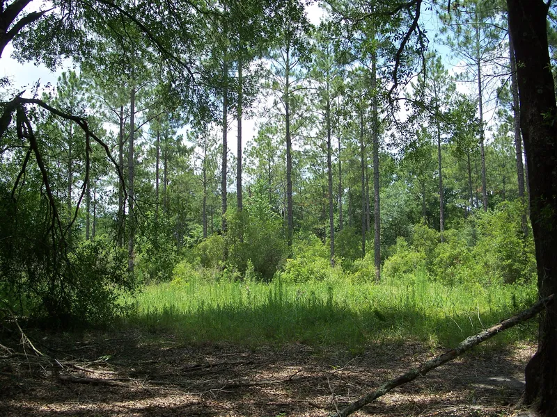 timberland hunting property very near several large hunting plantations. Timber is young planted pines, older natural hardwood and pine with some bottomland environment on west side. Excellent deer hunting with trophy class Whitetail deer possible. Said to be lots of turkeys. Buck shown was harvested last year. Same hunter previously jumped a bedded buck that he calculates was in the 160' class............