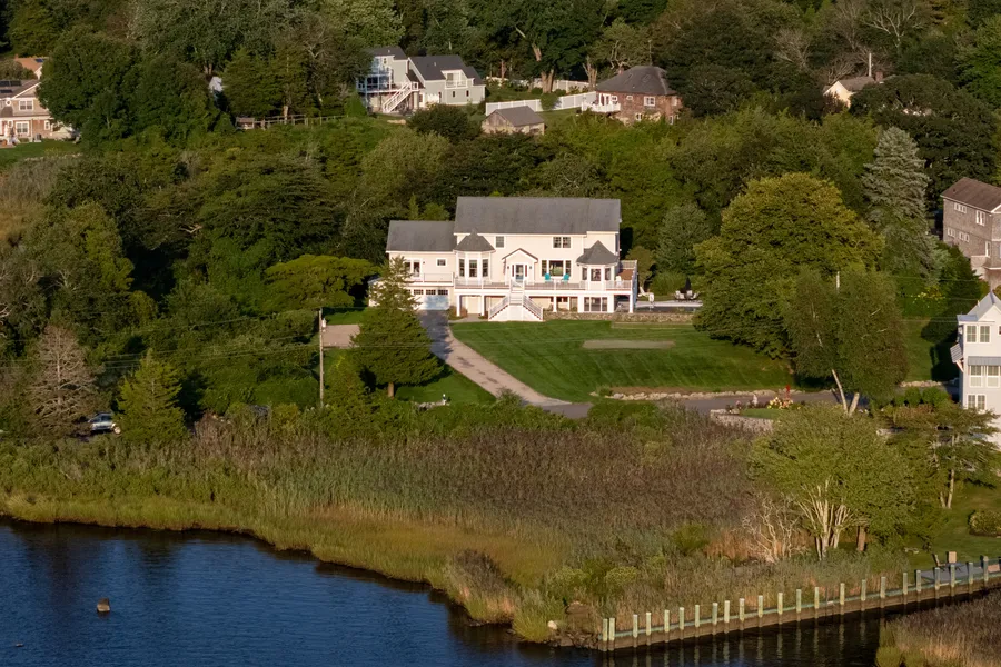 This house is all about the views! From the living room, sitting room, main bedroom, screened-in porch, second-floor library landing, and lower-level entertainment room, you are treated to breathtaking vistas stretching from Colonel Willie's Cove, straight to the Atlantic Ocean, all the way to Napatree Point. The home is bathed in sunlight and by evening, the skies transform with mesmerizing sunsets year-round. Watch boats glide in and out of the Cove, feel the soft ocean breezes, and lose yourself in the post-sunset glow that lingers on the horizon. This 4,700-square-foot home features open-concept living, dining, and kitchen areas, all with magnificent water views. Two office nooks offer privacy while still connecting to the main living spaces. A hard-wired sound system runs throughout the house, ready for the new owner to add their personal playlist. When not marveling at the views, take a dip in the well-maintained inground pool. The spacious ensuite main bedroom features a walk-in closet and a well appointed bathroom. Upstairs, the landing lined with bookshelves creates a cozy reading nook with views. Two additional bedrooms, plus bath, an extra sleeping room designed as a den, and ample attic storage complete the upper level. Above grade lower level offers a family room, a full bath and a fabulous work room! Outdoors, you'll find a putting green, bocce court, two-car garage, and plenty of parking, making this home perfect for entertaining friends and family.