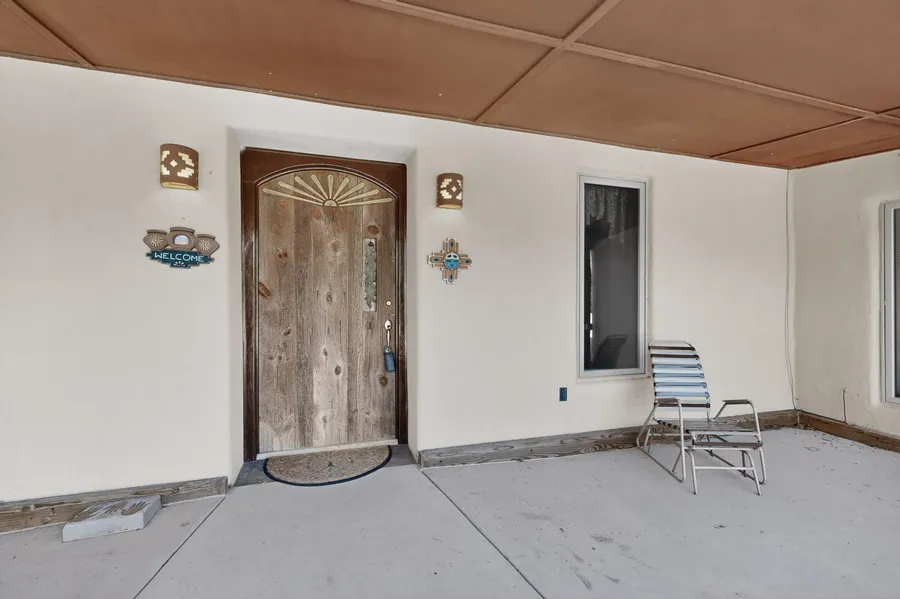 A front covered porch enhances the charm of the custom property, featuring exceptional elements such as vigas, beams, and corbels. The distinctive charm and exceptional craftsmanship that define this residence are truly remarkable. Every aspect of the home reflects attention to detail, showcasing the skill and artistry of its builders. From the intricately designed moldings to the carefully selected materials, each element contributes to an overall aesthetic that is both inviting and sophisticated. The layout of the space is thoughtfully planned, allowing for a seamless flow between rooms while maintaining a sense of intimacy. Natural light floods the interiors, highlighting the exquisite finishes and enhancing the warm ambiance. This home is not merely a structure;