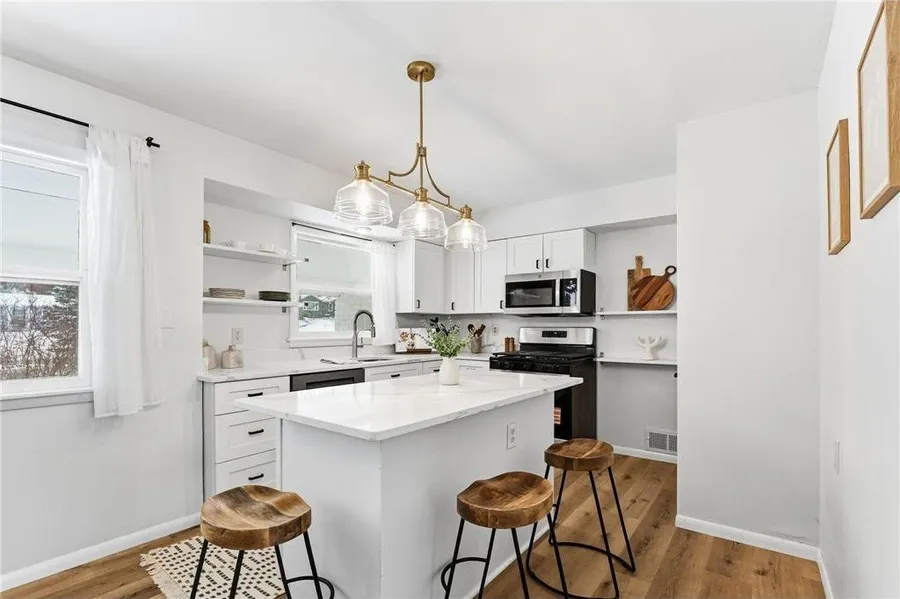 views right from the backyard. The fully renovated kitchen shows an open-concept layout with new