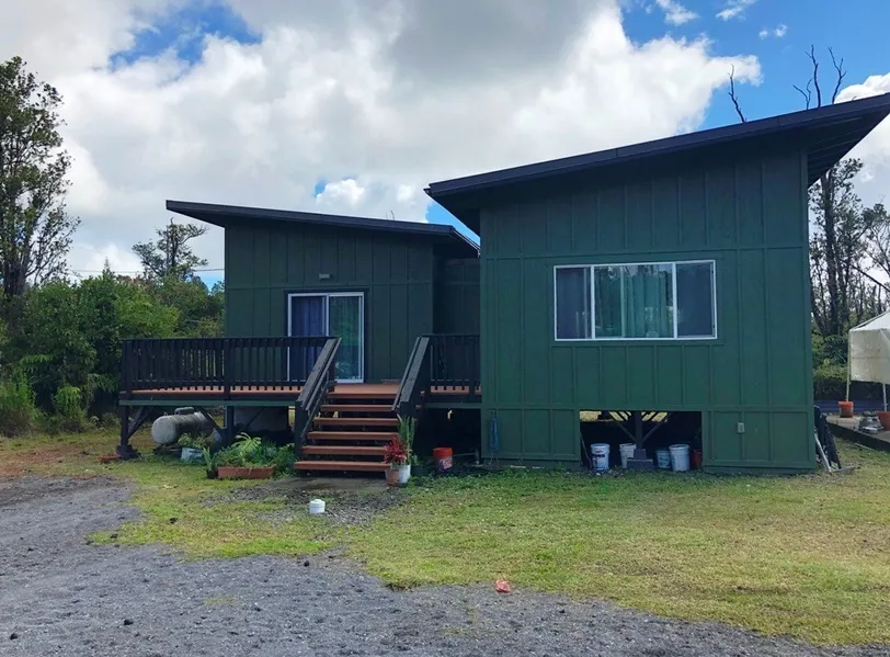 Looking for something unique? This is not your average cookie cutter design. This home has 2,188 square feet of living space. It is comprised of two detached units, each with a bedroom and bath. The ohana is perfect for rental, guests, or extended family. It has 420 feet of wooden decks. This home was built for comfort, and gated for privacy. The home was completed in 2018, and has been carefully maintained. The front unit bedroom is an amazing 16 x 38 ft. It is very spacious, with its own entrances from the front and back decks. Both units feature relaxing soaking tubs, and the front unit also has a walk-in shower. Kitchen is furnished with up-to-date. stainless steel appliances, including a dishwasher. Both bedrooms feature cedar-lined closets to protect your clothing. They started construction of a huge garage/utility room. Concrete slab has been poured and roughed in for water and electric. They have also started an addition to the rear unit. It is about 300 square feet, but has not been completed. The lot is three acres, one of which has been cleared, leaving lots of room for expansion, or agricultural projects. Property has complete catchment system, including a 20,000 gallon storage tank, two stage filters, and a UV light for water safety. Owner has sited three enclosed storage tents, and a 40 foot storage container. These are personal property and will be removed unless buyer wishes to purchase them.