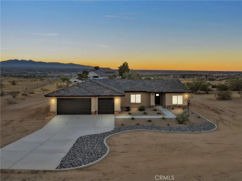 AMAZING VIEW PROPERTY . This home is just a few miles from Jess Ranch Marketplace and Apple Valley and Del Webb golf course . Location is a unique and important thing about a home and this one sits in a excellent location . As you approach you are welcomed by beautiful landscape , custom stone work in a quite neighborhood . Property has RV access and plenty of space to do what you dream of with a 3 car garage and zoned equestrian residential. Vaulted with 9 foot ceilings through out the home this home has a cozy feeling the moment you walk in . High end details include Calcutta quartz counter tops with a huge kitchen island and bar , soft close cabinets with tasteful upgraded bronze hardware and sinks throughout the home to add contract and are very appealing to look at. Walk in pantry , drop down lights with can lights . Formal dining area next to the kitchen . In house laundry room . All bed rooms are extremely large with views through the windows. Primary bedroom has a huge walk in closet 2 sinks restroom shower and bath.