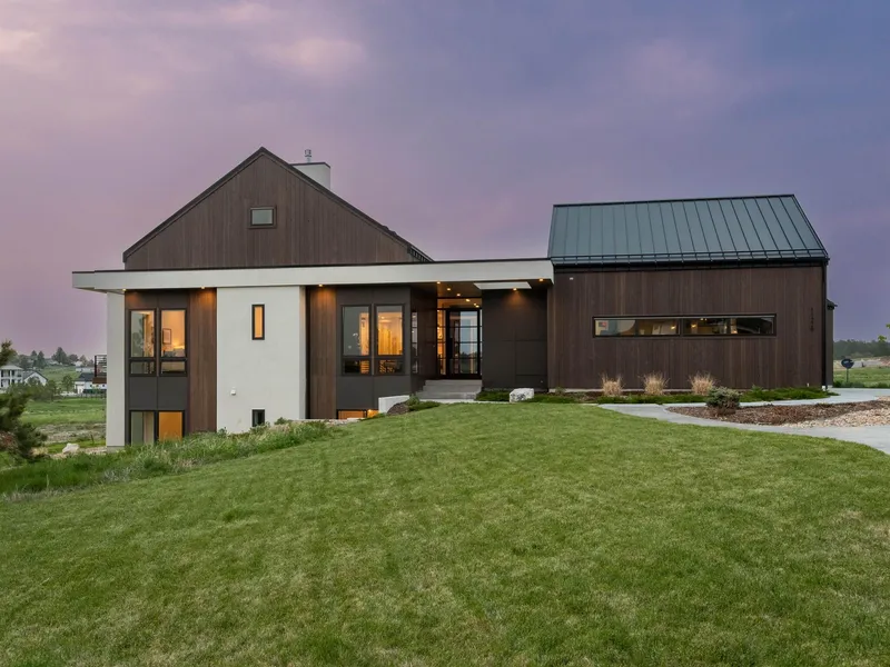 The “Monterey” modern farmhouse design built by Craftsman Home Company is a Colorado farmhouse design anchored by sustainable wellness and living. Outfitted on 1.7 acres, the "Monterey" is positioned to take in the beautiful mountain views via expansive outdoor living spaces with a covered deck and patios. The outdoor living spaces about with interior courtyards overlooking the dedicated open space and beloved Fox Hill Farm. This 4 bed, 5 bath custom home has an entry that centers you in the home with a designated study off of the great room, a guest suite and an open kitchen concept with a beautiful island, perfect for entertaining, and an attached dining room with a built-in hutch bar. Concluding the main floor is a secluded and spacious owner's suite designed with 2 expansive walk in closets and gorgeous views of the Rocky Mountains that is complete with an attached laundry room and stunning master bathroom. The lower level is complete with two finished bedrooms, with quick access to a bathroom perfect for sharing. After descending the stairs to the walk-out lower level, the home opens to showcase a great room that is perfect for a gaming room, media room, or entertainment room. Attached to this entertainment room is a full size wet bar with ample space to fit barstools for a casual seating area for guests. This walk-out lower level is the entertainers dream come true. Complete with the exquisite main level, this gorgeous home checks all of the boxes for acreage farm-to-table living at Fox Hill community!